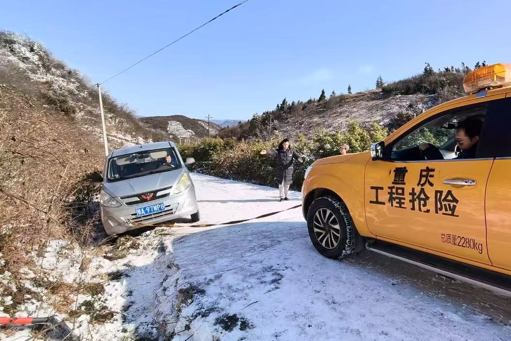 图为巡检职员正在指挥车辆开展救援